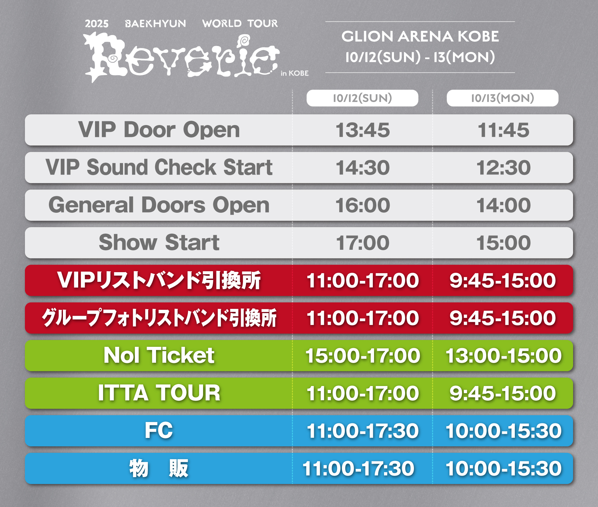 【10/12公演】『2025 BAEKHYUN WORLD TOUR 〈Reverie〉 in KOBE』1:20グループフォト当選座席番号のご案内